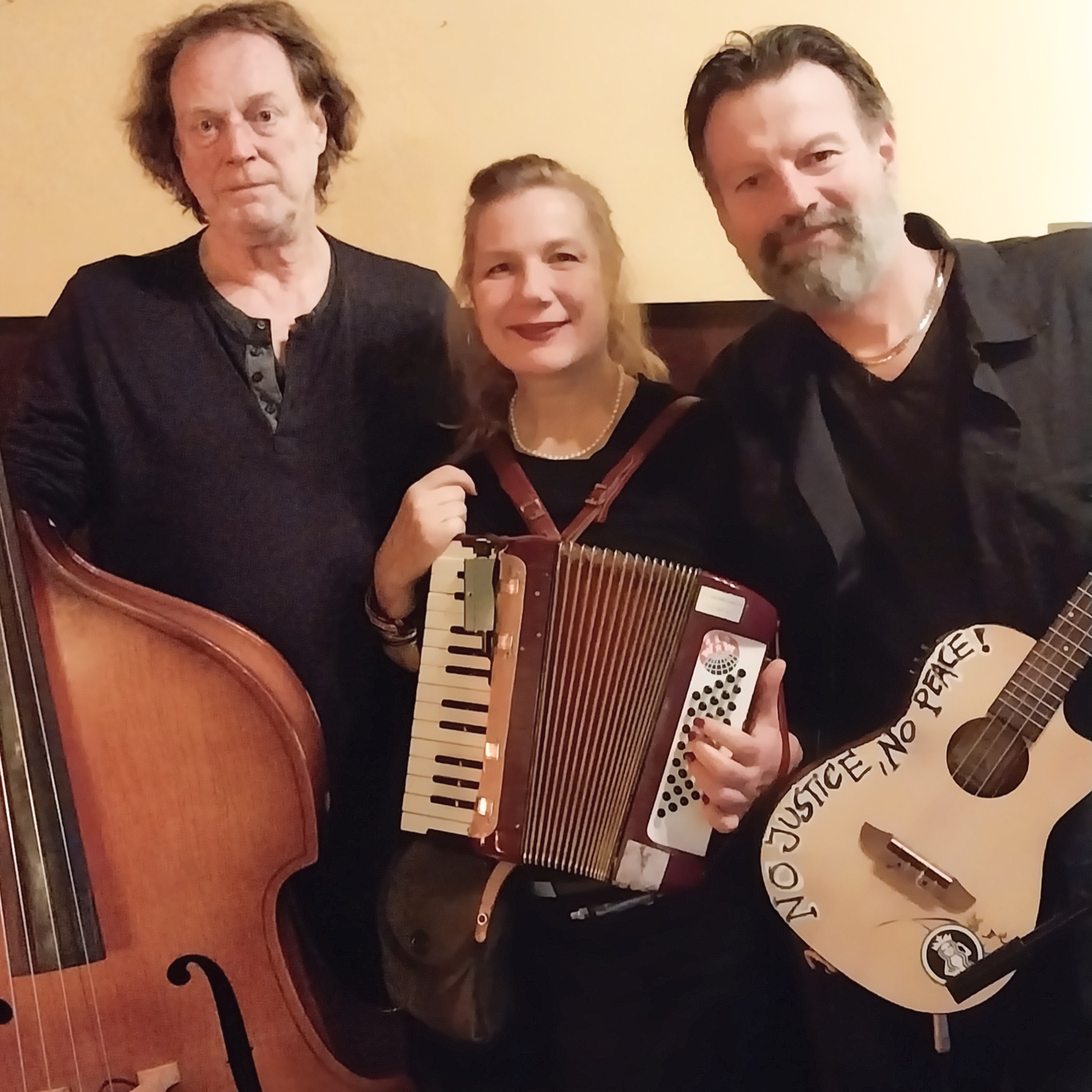 Donnerstag, 4. April 2024 im Alten Schweden in Berlin-Wedding. Danke an Heinz für das phantastische Lamm mit grünen Bohnen, Kartoffeln und Bratensoße! Und an das nette Publikum. Wir haben mit unverstärktem Bass, Akkordeon und Banjolele gespielt. Das hat es manchmal etwas schwierig gemacht, Druck aufzubauen. Vielleicht hätten wir besser auf die ruhigeren Stücke im Repertoire gesetzt? War aber trotzdem ein guter Abend, glauben und hoffen wir.